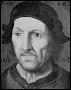 Îl vedem pictat aici pe exteriorul tripticului ”Carul cu fân” care se află la Muzeul Prado din Madrid.