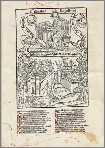 Augustin a conceput măreața opoziție a celor două cetăți din De civitate Dei după modelul celor două feluri de cetate de care vorbește Platon în Republica: una plină de lipsuri, iar alta cu modelul în cer.